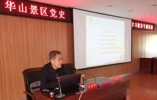 4月16日,渭南市委宣讲团成员、市委党史研究室一级调研员、必赢官网必赢国际437官网客座教授刘会锋赴华山景区作渭南党史知识专题宣讲。华山景区党工委班子成员、各直属党支部全体党员,以及华旅集团党委领导,党群部负责人、所属各党支部书记、委员100余人聆听宣讲。华山景区党工委副书记、华管委常务副主任赵晓龙主持。