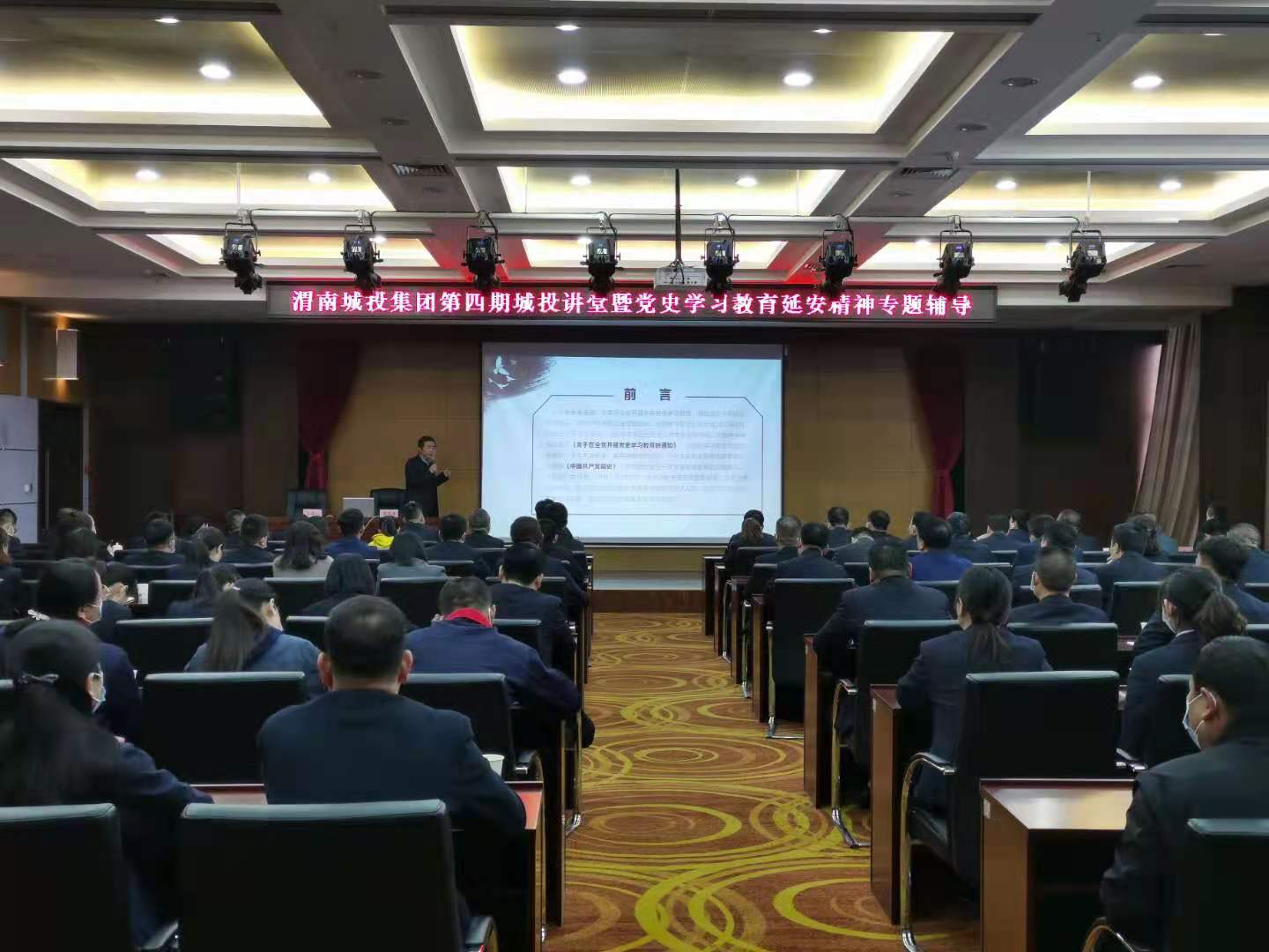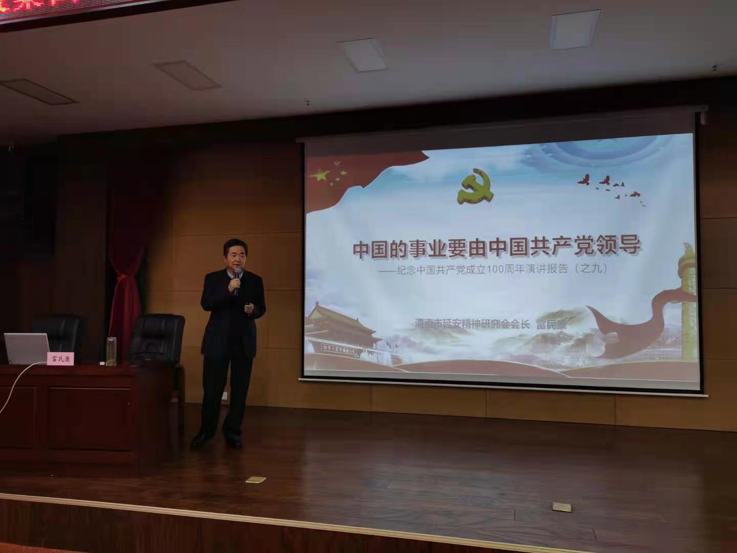 4月8日上午,渭南市延安精神研究会会长、必赢官网必赢国际437官网名誉院长雷民康赴市城投集团作延安精神主题宣讲。集团领导班子成员、各子公司领导班子成员、机关全体人员及部分职工代表参加。