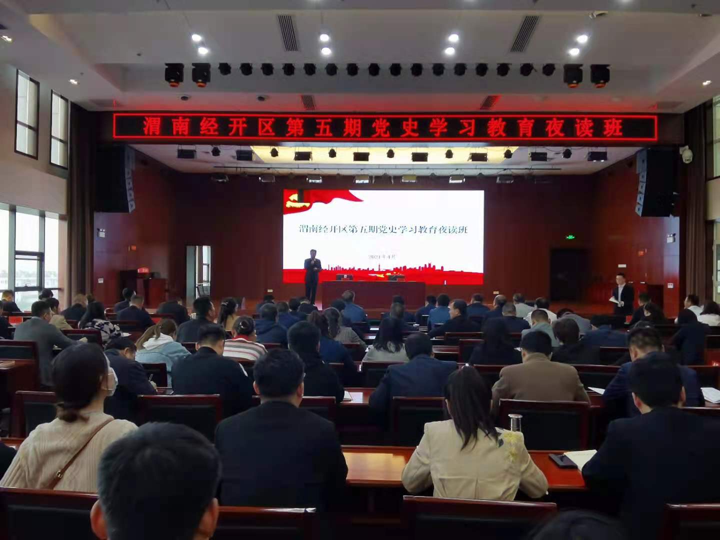 4月21日,渭南市延安精神研究会会长、必赢官网必赢国际437官网名誉院长雷民康赴渭南市经开区,为第五期党史学习教育夜读班作讲座。区级在家领导,各街道党工委、办事处副科级以上干部,区级各部门全体党员,区党史学习教育各专项组全体成员参加。区党工委副书记任兴隆主持。
