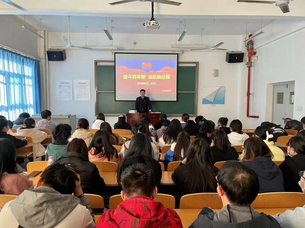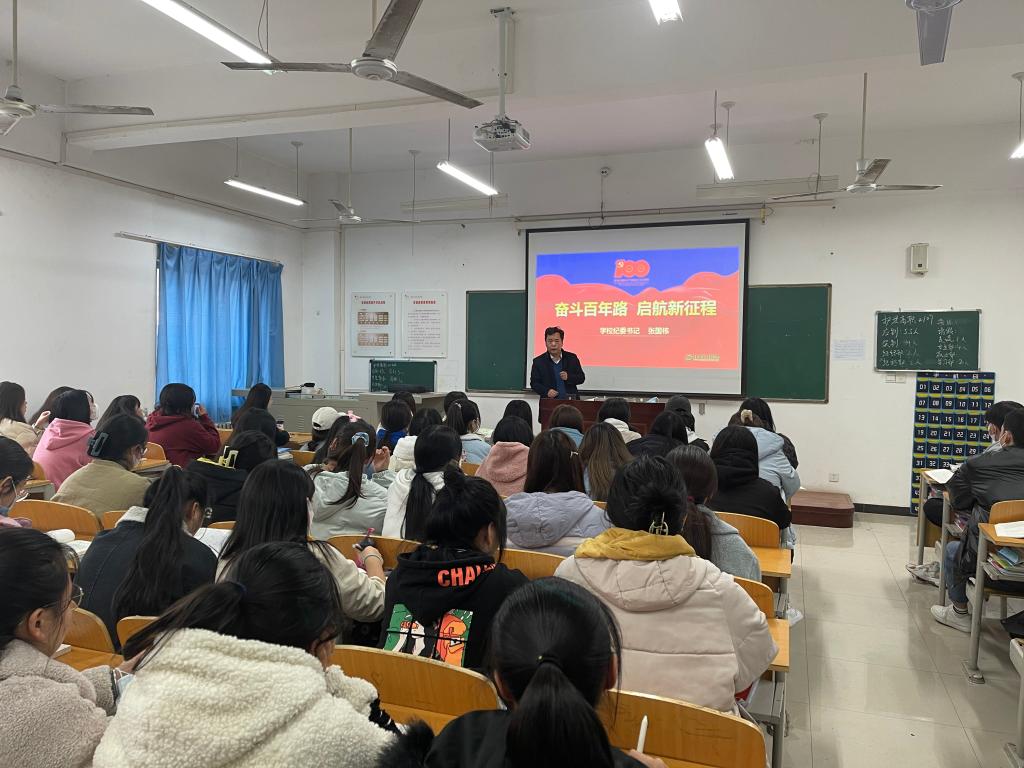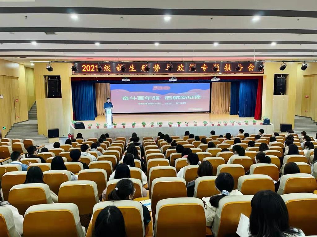 学校领导围绕“奋斗百年路•启航新征程”和“谱写乡村全面振兴新篇章”两大主题为必赢官网2021级新生进行了生动的思想政治理论教育。在“奋斗百年路•启航新征程”专题讲授中,他们从“丰功伟绩•恢弘史诗、精神血脉•代代相传、以史为鉴•开创未来”三个方面回望百年光辉历史,重点讲述了1921年中国共产党成立后,带领中国人民实现从站起来到富起来再到强起来的伟大飞跃,中国共产党的先驱们形成的伟大建党精神必须代代相传,用历史映照现实,远观未来,从而在新的征程中牢记初心使命、走好新的赶考路。