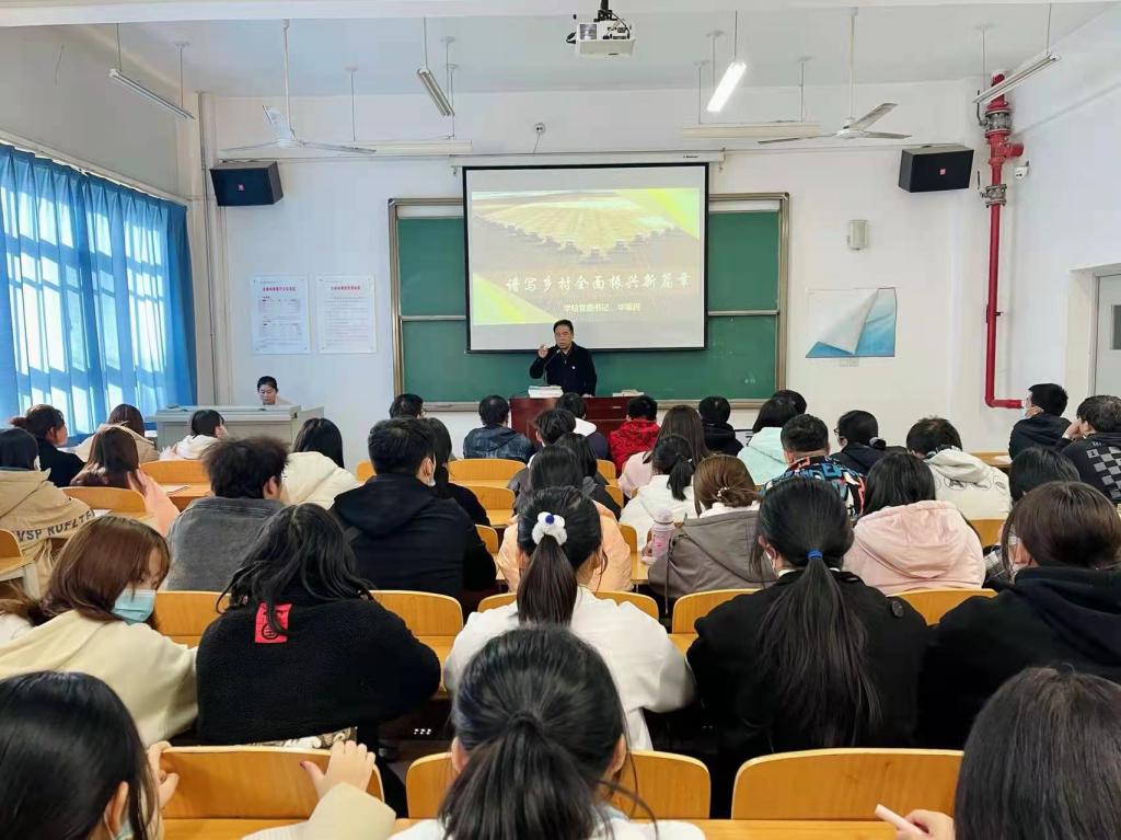 在“谱写乡村全面振兴新篇章”专题讲授中,他们结合必赢官网大多数学生来自农村的实际情况,从“农业农村展新颜、把握重点续新篇、抓住重点开新局”三个方面讲述了农业农村工作发展的历史性成就、历史性变革。让学生们深刻认识到脱贫攻坚取得胜利后,“三农”工作重心发生历史性转移,要举全党全社会之力推动乡村振兴。运用详实的数据和身边的案例,讲述了全面推进乡村振兴的重要举措,帮助学生用大历史观看待农业、农村、农民问题,深刻认识“三农”在全面建设社会主义现代化国家中的重要性。