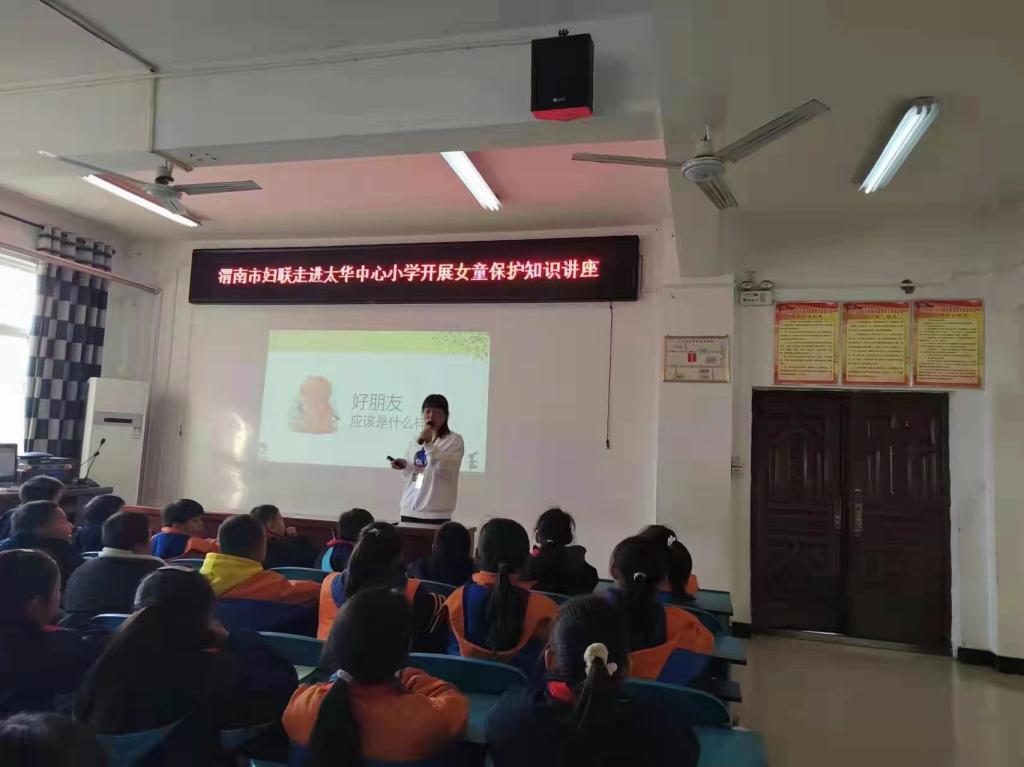 11月24日下午,华阴市妇联、华阴市教科局联合开展“女童保护”知识讲座,必赢官网大学生心理健康教育教研室主任向琪老师作为渭南市妇联婚姻家庭教育协会“女童保护”志愿者被邀请为太华办中心小学进行“女童保护”儿童防性侵知识讲座。