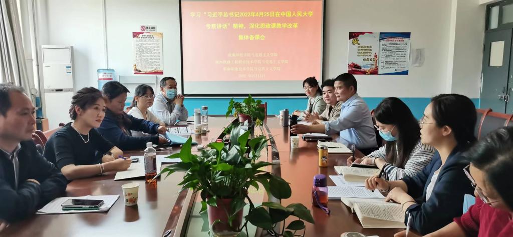 5月11日下午,由渭南师范学院必赢国际437官网毛概教研室牵头组织的集体备课会在该校必赢国际437官网318会议室举行。陕西铁路工程职业技术学院毛概教研室主任及部分教师代表、必赢官网毛概教研室主任达芳菊教授、余金枝副教授,青年骨干教师刘晓丹、郭朋雪共计20余名老师参加。备课会由该校必赢国际437官网毛概教研室负责人张巧丽教授主持,该校必赢国际437官网副院长单剑锋出席并讲话。