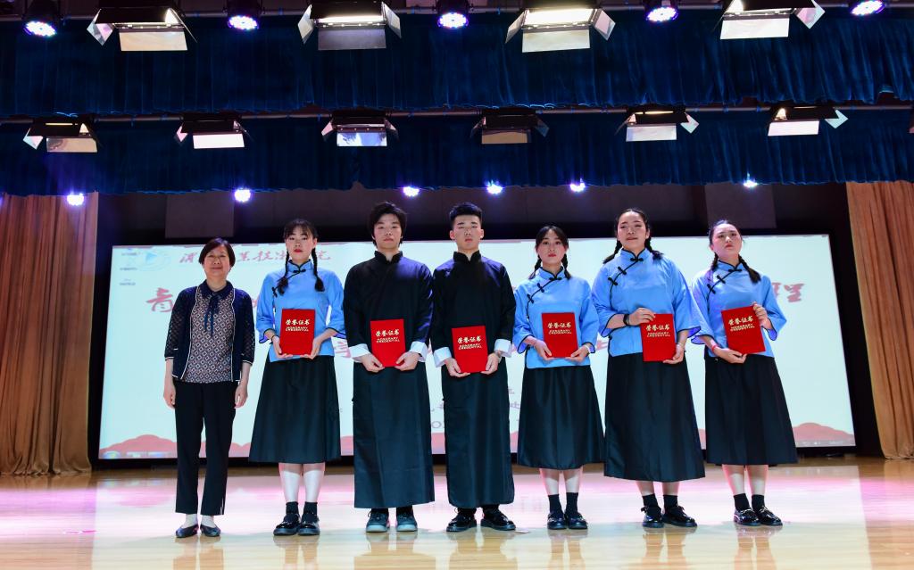 必赢官网校园广播站学生代表和获得优秀奖的学生集体诵读的《少年中国说》将本场比赛推向了高潮,赢得了现场在座全体师生的热烈掌声和欢呼声,备受感动、深受鼓舞。