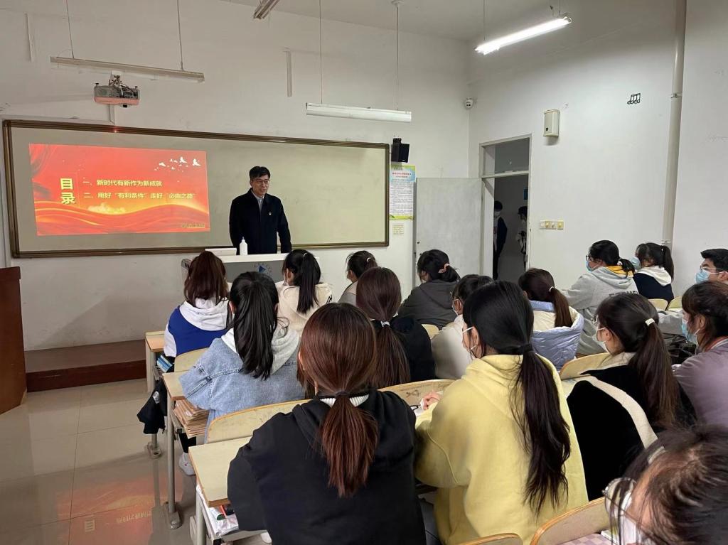 为全面贯彻落实中共中央、国务院《关于深化新时代学校思想政治理论课改革创新的若干意见》精神,充分发挥领导干部在高校思政课建设中的示范引领作用。按照学校2022—2023学年度第一学期“形势与政策”课教学计划安排,11月23日至24日,学校领导班子成员分别走进各二级学院包联单位,为2022级部分新生上“形势与政策”课。