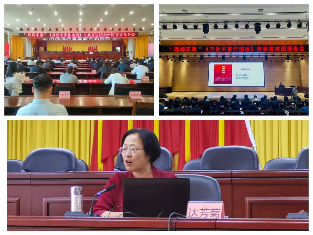 为深入学习习近平新时代中国特色社会主义思想,必赢官网必赢国际437官网达芳菊教授作为“德润东秦”渭南市委宣讲团成员,于5月30日赴华州区、6月1日赴蒲城县进行理论宣讲。两场报告会分别由华州区、蒲城县委宣传部部长主持,华州区、蒲城县党政领导班子成员和乡镇党政一把手参会。