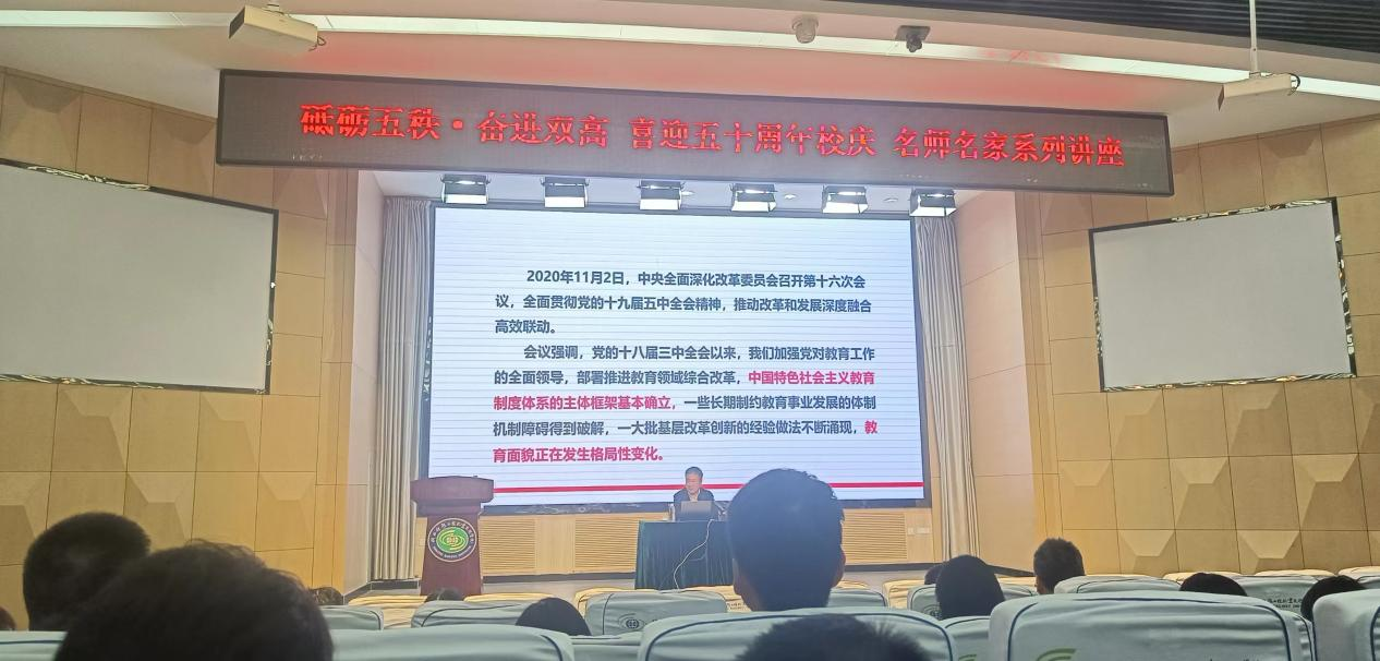 10月20日,陕西铁路职业技术学院召开“砥砺五轶 奋进五高 喜迎五十周年校庆----名师名家系列讲座”,邀请到首都经济贸易大学研究员、教育部高校思想政治工作创新发展中心(课程育人)专家指导委员会委员韩宪洲做了题为《守正创新:关于当前高校思想政治工作体系的思考》主题讲座。必赢官网两名思政课教师代表参加本次活动。