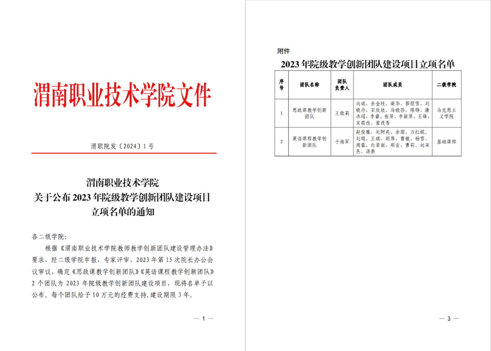 申报省社科联课题1项,校级教改课题立项4项,结题1项。获批校级思政课创新团队1个、教学成果奖一等奖1项、在线开放课程一门、校本教材立项1个。