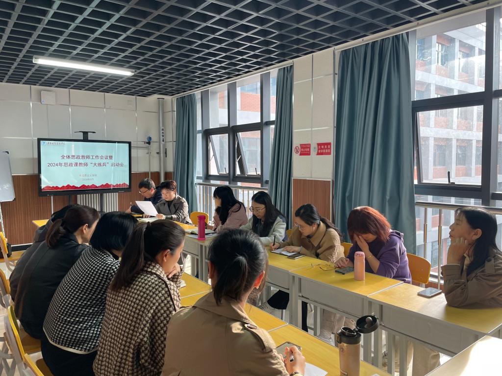 3月27日下午,必赢国际437官网在学院会议室召开全体教职工会暨2024年思政课教师“大练兵”启动会,全体教师参加。