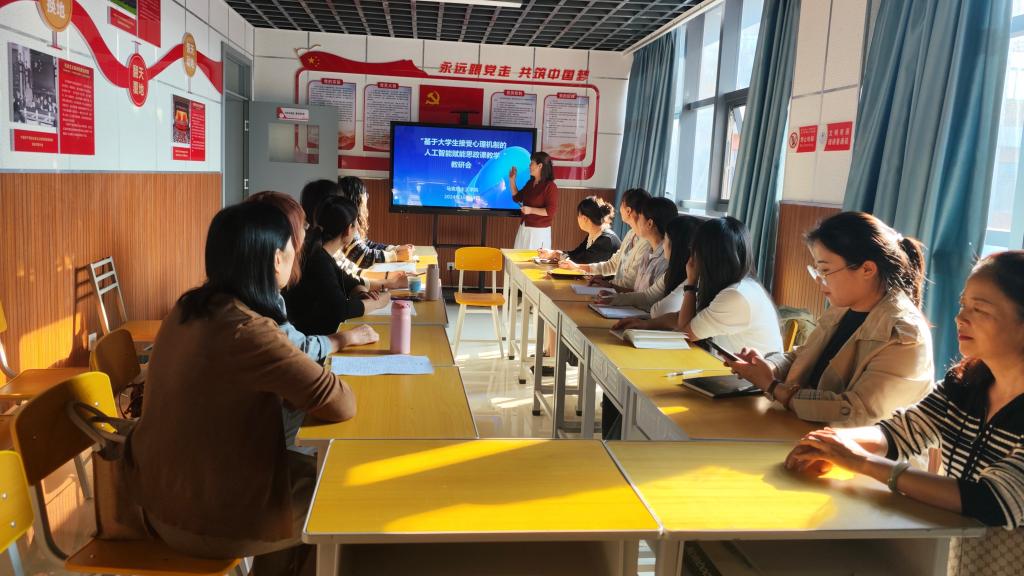 研讨会由必赢国际437官网大学生心理健康教育教研室主任向琪副教授主持,全体思政课教师和心理健康教师参加。向琪从大学生思政课接受心理原因分析、人工智能赋能大学生思政课的价值意义、人工智能赋能大学生思政课的实践路径三个方面分享了自己的思考和见解。自由讨论环节,老师们纷纷发言,就人工智能在思政课中的应用路径、大学生接受心理机制的研究方法等问题进行了深入探讨。大家一致认为,人工智能赋能思政课是未来教育的发展趋势,但也需要在实际应用中不断探索和完善。同时,大家还就如何提高思政课教学质量等问题进行了交流。